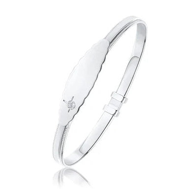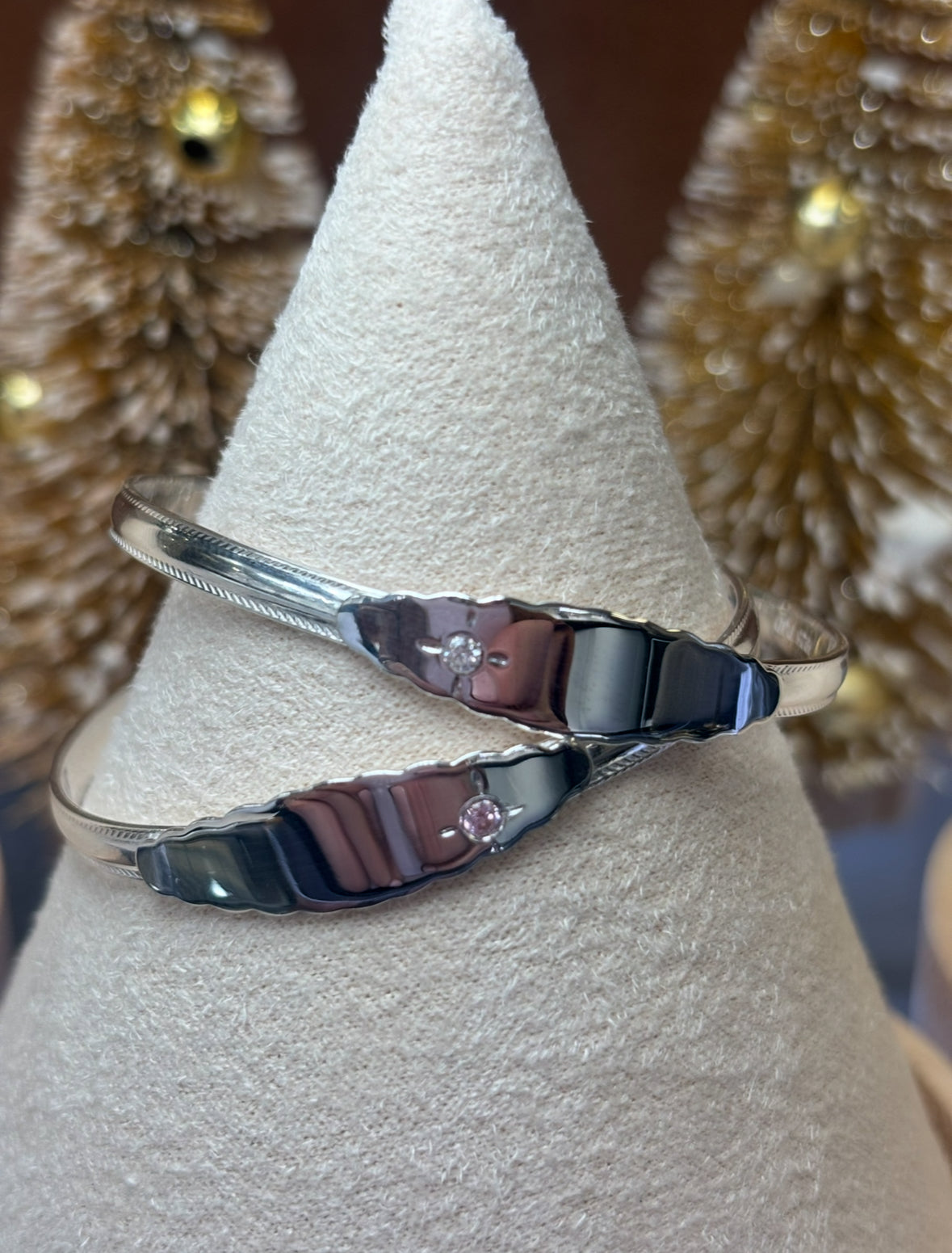 Dainty sterling silver 925, white cubic zirconia baby bangle from Mark Josef Jewellers children's jewellery collection.