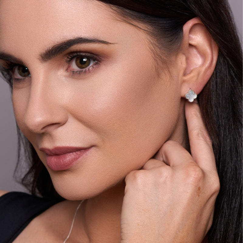Sterling silver , mother of pearl clover stud earrings from Mark Josef Jewellers hidden gem collection. These beautiful earrings are perfect for that special occasion or every day wear.