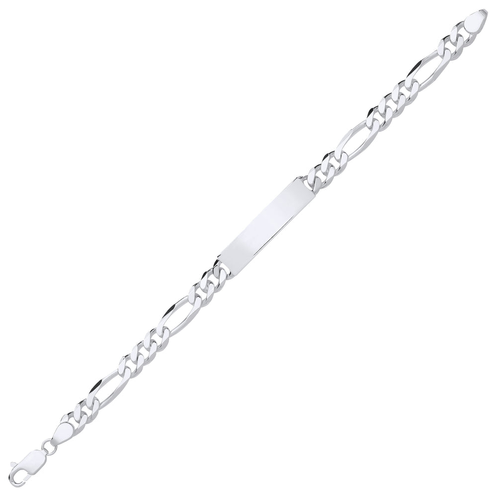 Sterling silver 925, rhodium plated men's Chunky Figaro ID Bracelet from Mark Josef Jewellers personalised jewellery collection. Crafted from the finest silver this bracelet can be engraved with name or date to personalise.